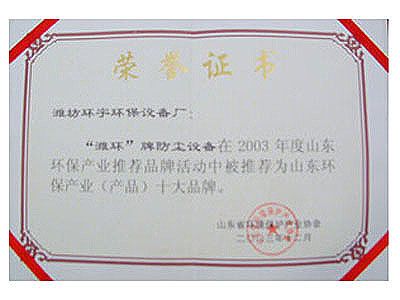 山東省環(huán)保產(chǎn)業(yè)(產(chǎn)品)十大品牌
