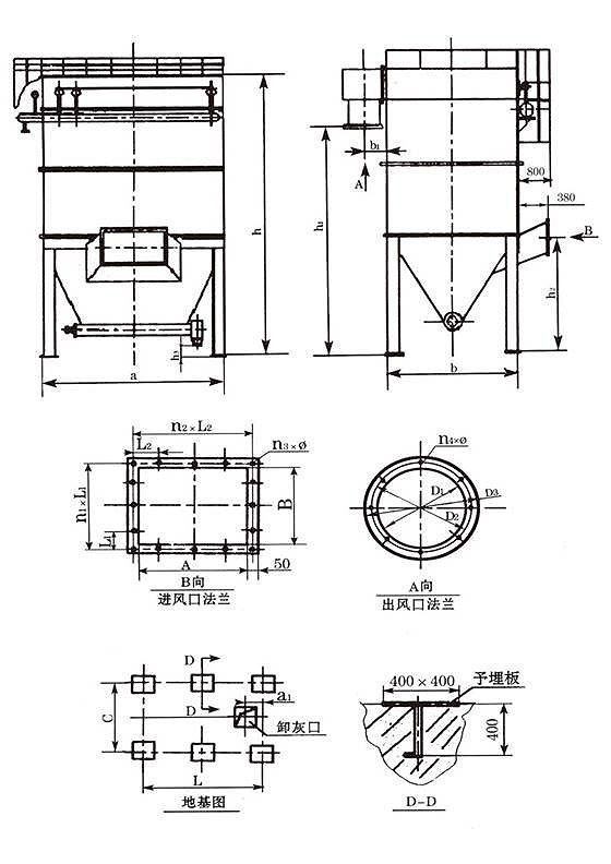 (2)根據(jù)粉塵性質(zhì)不同,除塵器采用不同的濾袋,訂貨時(shí)請(qǐng)注明。